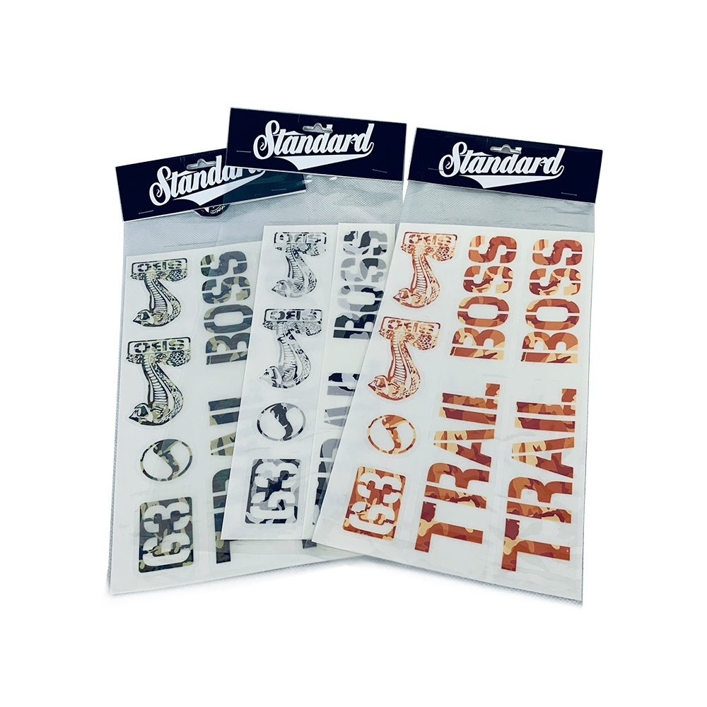 Learn a lesson from John Rambo, always be prepared when heading into the wilderness in hot pursuit by over zealous small town police and trigger happy National Guard troops, wear your appropriate camo patterns to avoid detection, like the ones offered as replacement frame stickers for the equally iconic Standard Byke Company Trail Boss. Fly through the trails and woop-de-doos virtually undetected in the jungle, the woods and ice and snow environments with JungleGreen, Earthtones and Snow/Winter woodland camo patterns and flashy corresponding color ways for this 6 piece frame stickers set that would bring a unhinged psychopath like John Rambo to lay down his guns, do yoga and embrace a higher meaning and search for truth within this Multiverse.